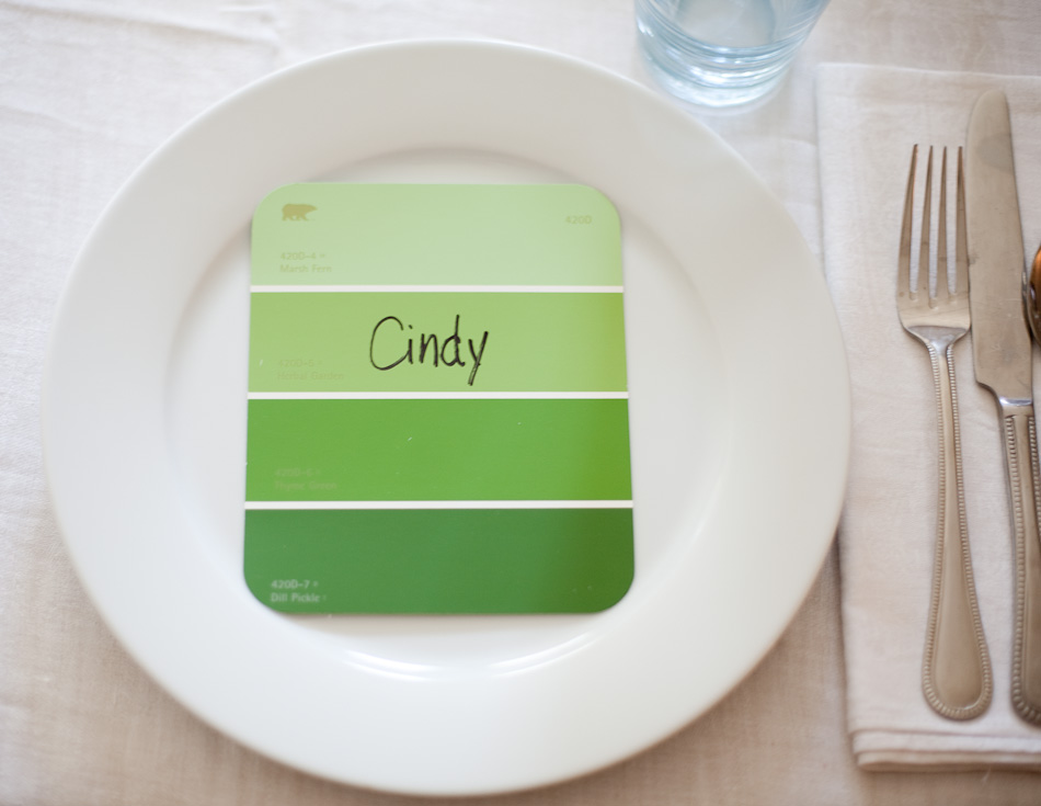 Lora set the table for me! Thanks Lora! We wanted it to be mostly white to make the color pop! And I love the place cards –